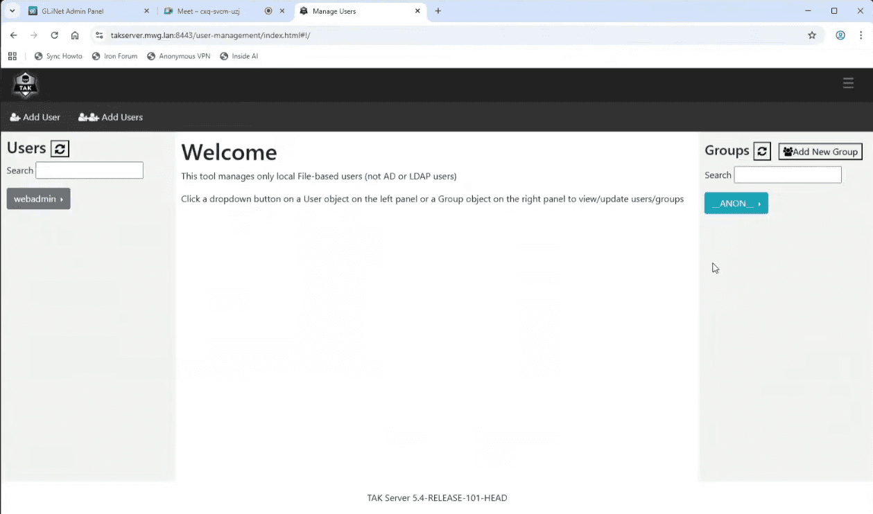 Open your web browser and navigate to your TAK Server’s administrative interface using the hostname you configured: