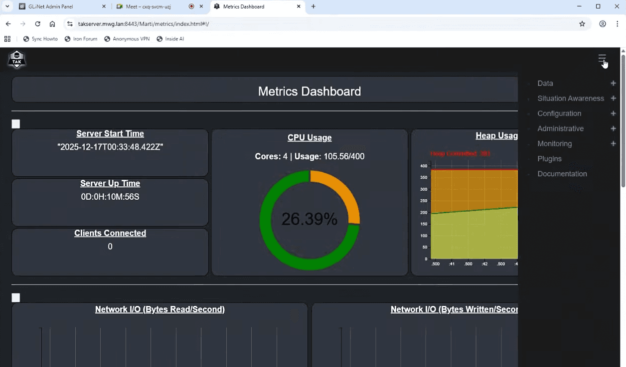 This setup provides the foundation for connecting ATAK, WinTAK, and iTAK clients to share real-time position data, chat messages, and situational information. While certificate enrollment for clients requires additional steps, particularly for devices that cannot access the server directly, the core server infrastructure now stands ready to support your team’s coordination needs.
