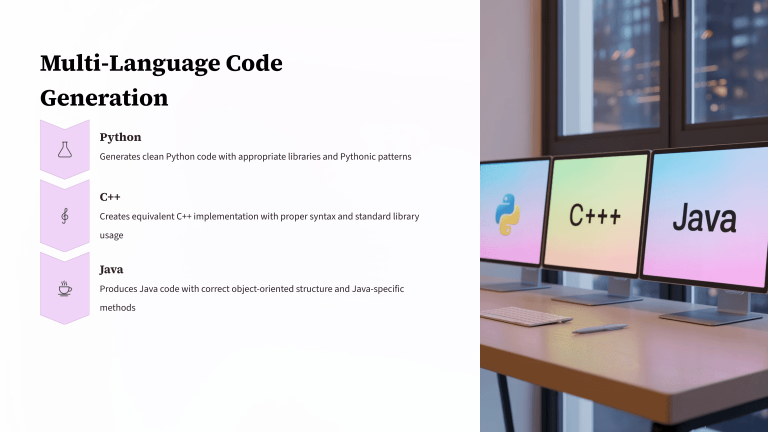 This capability proves invaluable for teams working with heterogeneous technology stacks or developers learning new languages. By understanding the logic and structure in their familiar language, developers can more easily transition to unfamiliar syntaxes and paradigms.